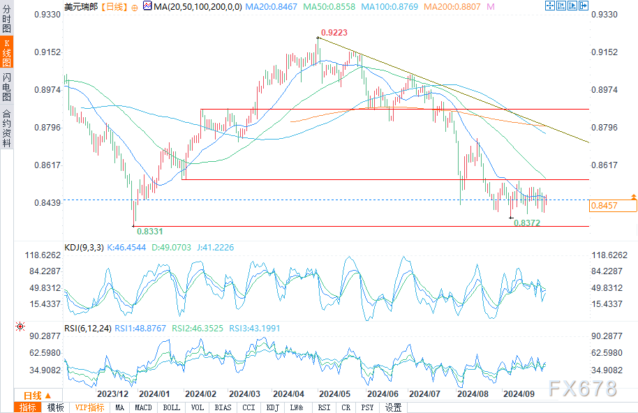 瑞郎方面,瑞士央行上周降息25个基点,使政策利率降至1.00%。央行提到,准备在必要时干预货币市场,新的通胀预测被大幅下调,这表明接下来会有更多的降息。