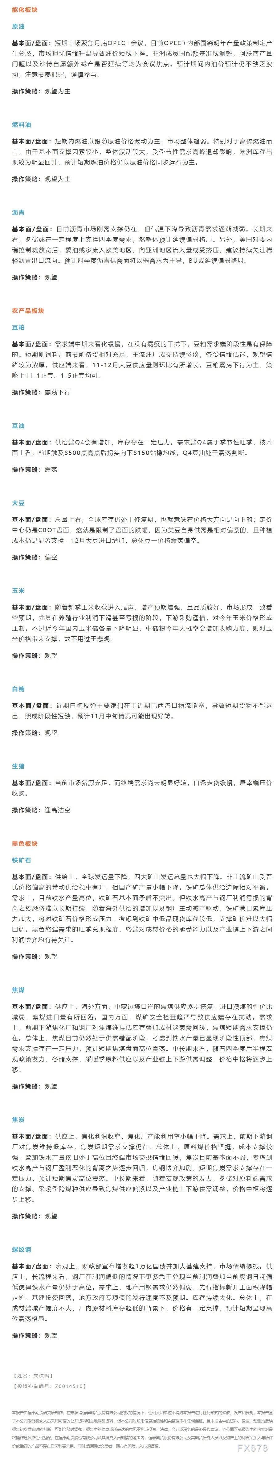 以下为恒泰期货11月24日对能源板块、黑色板块、农产品板块期货交易提醒和建议。