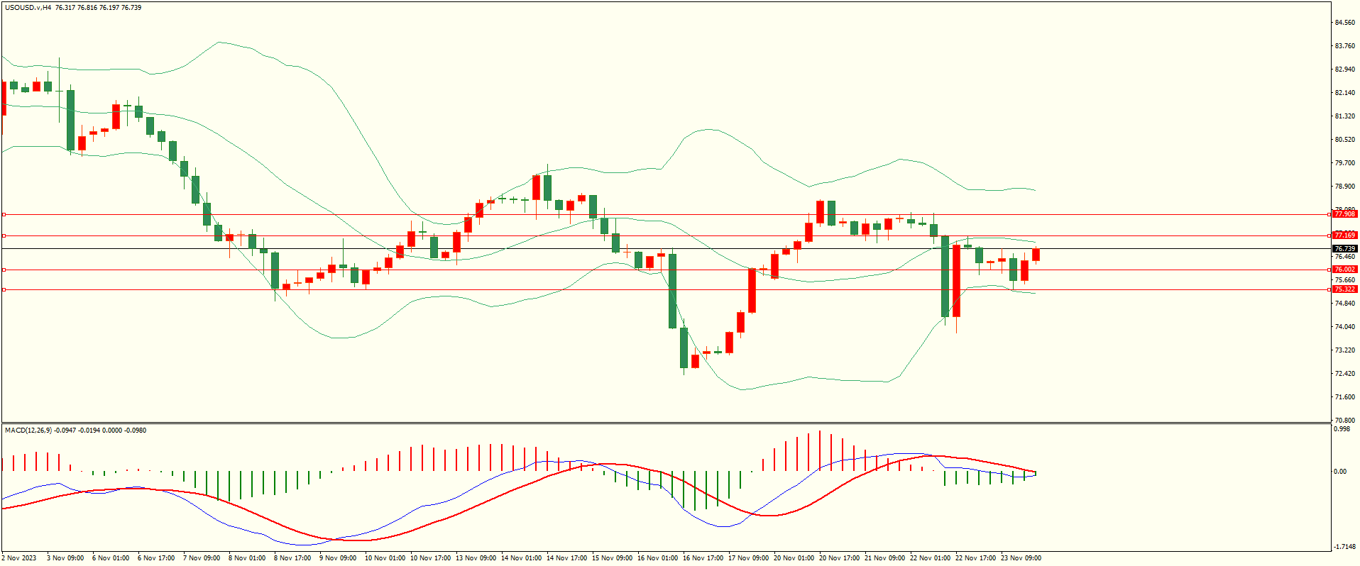 原油昨日回调至第一支撑展开反弹,日线报收下影线小阴线,下方支撑保持,目前上方面临前低密集压力图,收复后方可继续,从4H来看,布林上下轨略有收窄,MACD零轴附近运行,日内下方首要支撑76.00,第二支撑75.30-40,上方阻力77.15,77.90,保持在第一支撑上方短线有望回测第一阻力。