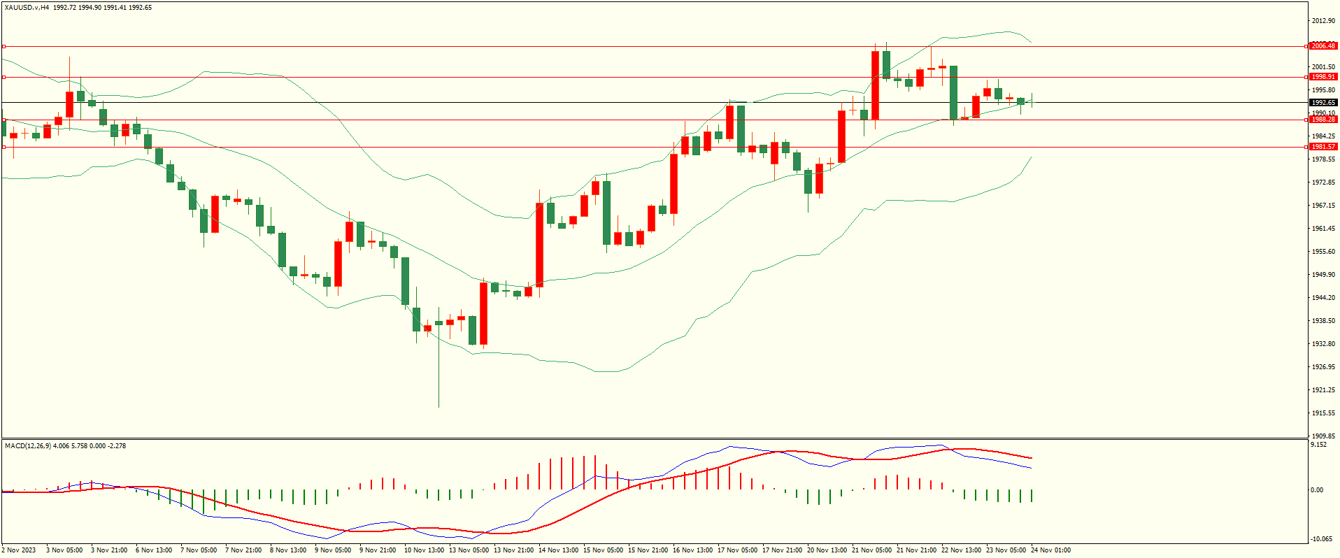 黄金昨日波幅受限,日线报收上影线小阳线,从收盘来看,上方阻力保持,同时下方支撑犹存,短线的多空争夺有望继续,结合4H来看,布林上下轨略有收窄,MACD零轴上方运行,日内下方首要支撑1988,第二支撑1981,上方阻力1998,2006,第一支撑在没有下破前短线有望回测第一阻力。