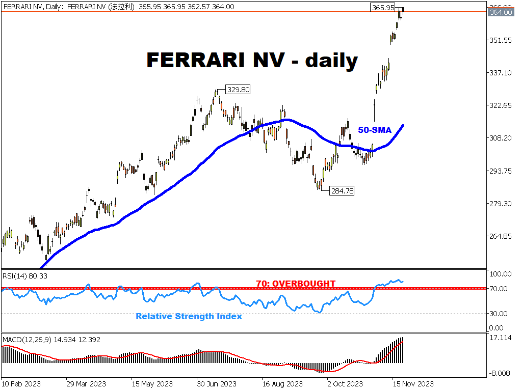 毫不奇怪,法拉利的股价也同时创下历史新高。
