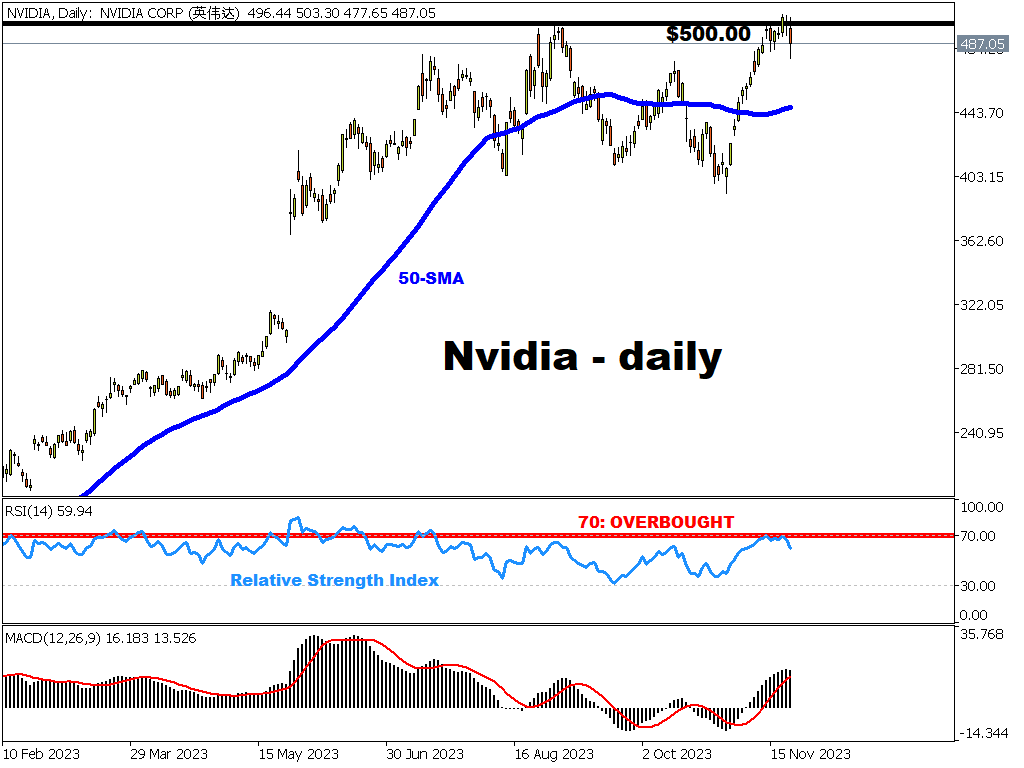 与纳斯达克100指数类似,人工智能热潮导致英伟达股价飙升。
