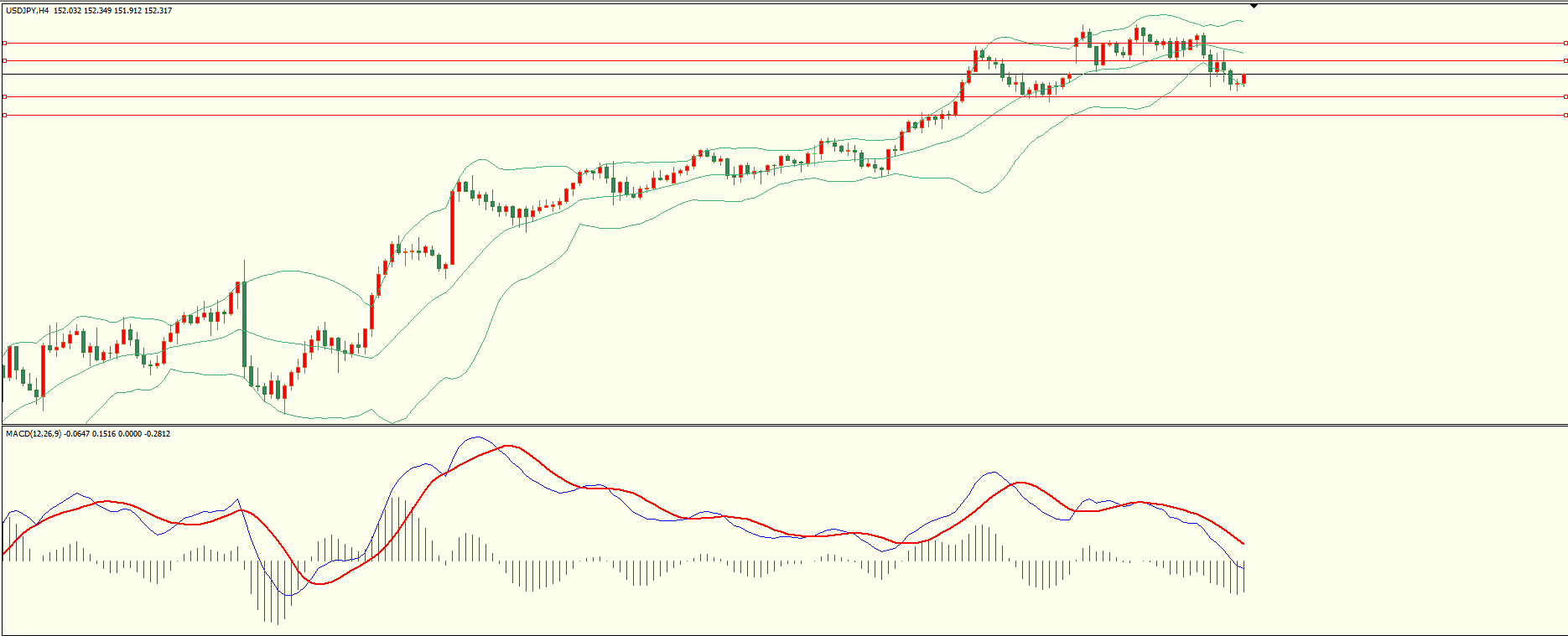 美日昨日亚市开盘后承压下行,纽约盘时段扩大跌幅,日线报收上下影线中阴线,多头动能略有减弱,同时需留意下方支撑区,失守后方可继续,从4H来看,布林中轨偏下,MACD零轴附近运行,日内上方首要阻力152.75,第二阻力153.30,下方支撑151.60,151.00,保持在第一阻力下方短线有望测试第一支撑。