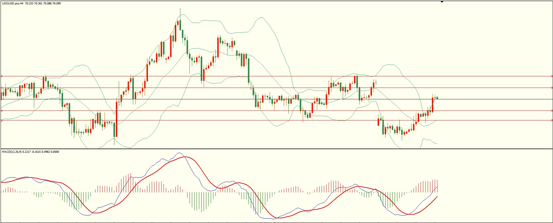 原油昨日回调至第一支撑附近延续反弹,纽约盘时段扩大涨幅,日线报收上下影线大阳线,收盘位置再次触及前阻力区,突破后方可继续,从4H来看,布林中轨偏上,MACD零轴附近运行,日内下方首要支撑69.10-20,第二支撑68.25,上方阻力70.00,72.05,保持在第一支撑上方短线有望测试第一阻力。