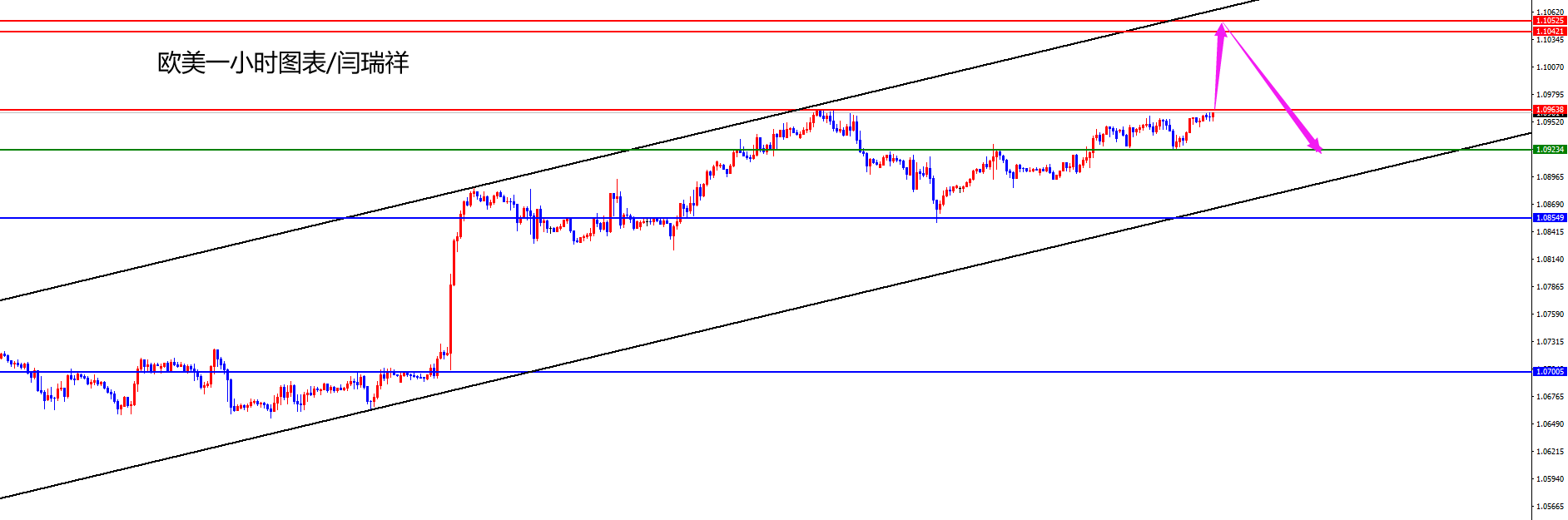 欧美方面,周一欧美价格总体呈现上涨的状态。当日价格最低下跌至1.0924位置,最高上涨至1.0958位置,收盘于1.0952位置。回顾周一欧美市场表现,早间开盘后价格短线震荡方式运行,晚间价格也没有再创新高,从收盘看价格阳线状态收尾。目前市场依旧处于上涨通道中,另外价格每次上涨都是接近230点空间,按照目前看价格有望进行刺破上周高点位置进行测试1.1040-50区间后在进行转跌,所以今日操作上等待价格触及至此进行布局,如若激进者也可以先多,随后触及至上方后再次转空。