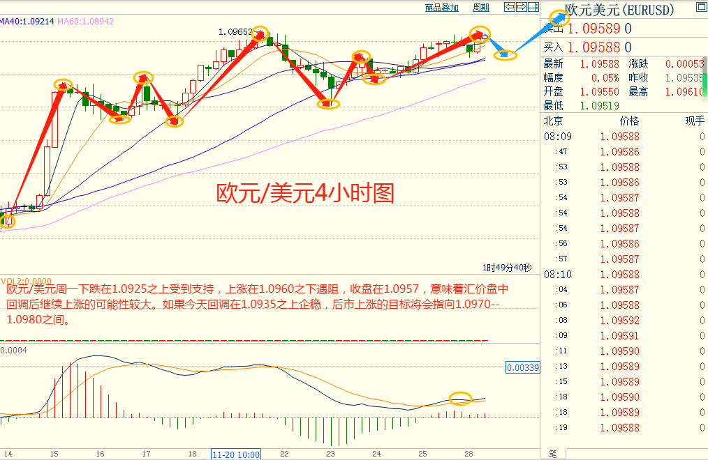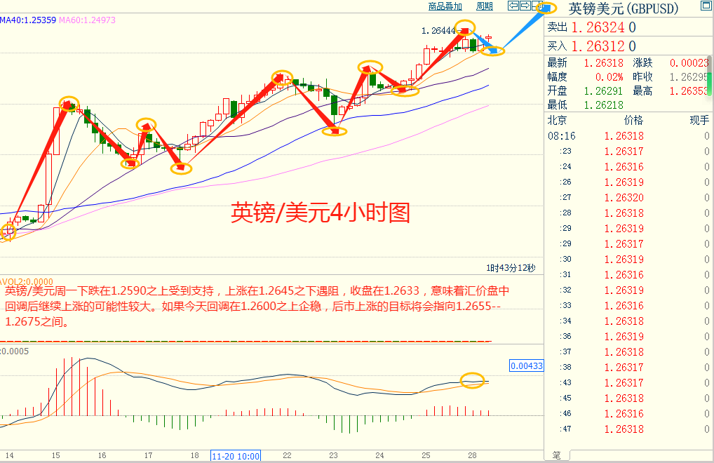 欧美周一下跌在1.0925之上受到支持,上涨在1.0960之下遇阻,意味着欧美短线下跌后有可能保持上涨的走势。如果欧美今天下跌在1.0935之上企稳,后市上涨的目标将会指向1.0970--1.0980之间。今天欧美短线阻力在1.0965--1.0970,短线重要阻力在1.0975--1.0980。今天欧美短线支持在1.0935--1.0940,短线重要支持在1.0910--1.0915。