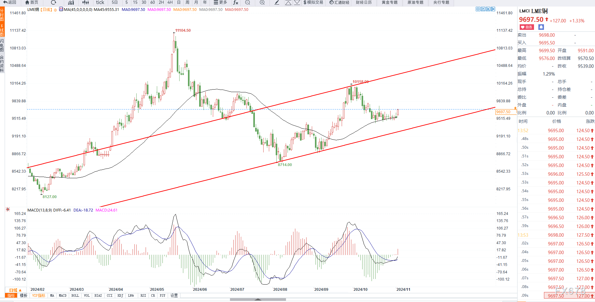 而美元指数走弱同样支撑铜价走高,目前需要等待美国大选之后基本面新的变化,日内维持震荡对待。
