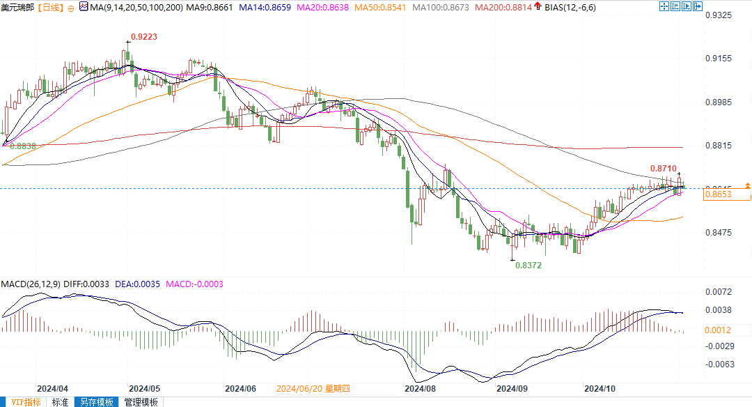 美元兑瑞郎日线图