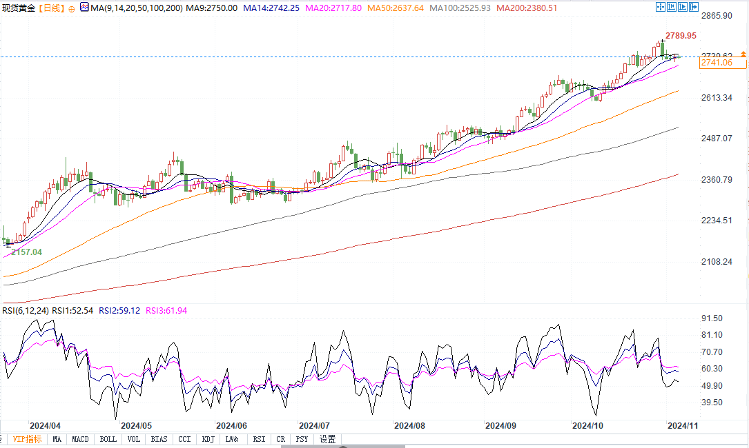 北京时间11月6日9:33,现货黄金价格报2741.16美元/盎司