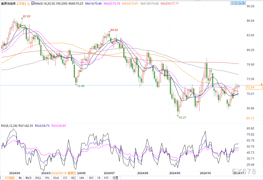 北京时间11月7日13:20,WTI原油价格报72.04美元/桶