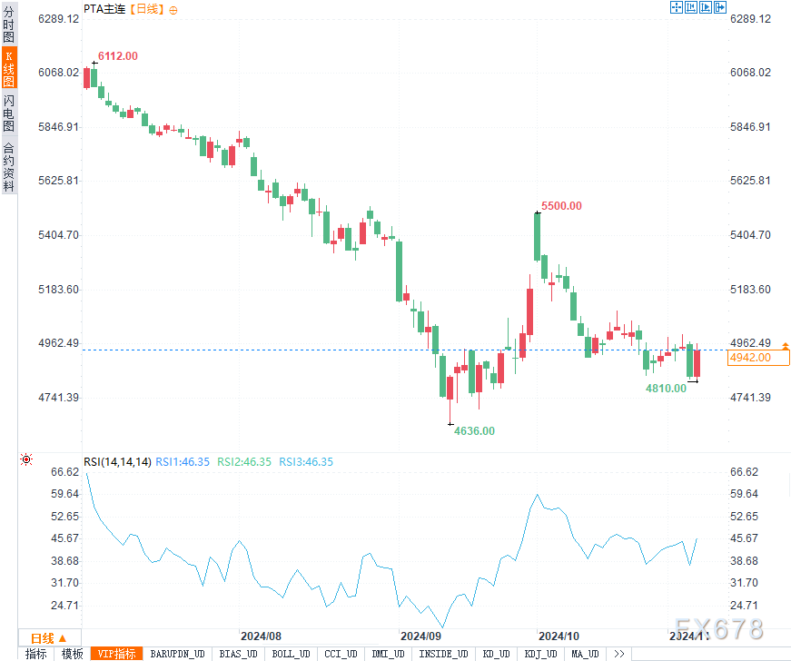 从技术面看,PTA主力合约目前在5600元附近获得支撑。由于市场缺乏明显利多因素,下方支撑关注5500-5550元区间,若跌破该区域可能引发进一步抛售压力。