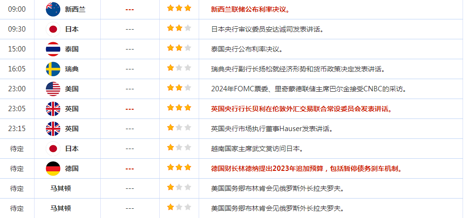 前日公布数据与消息: