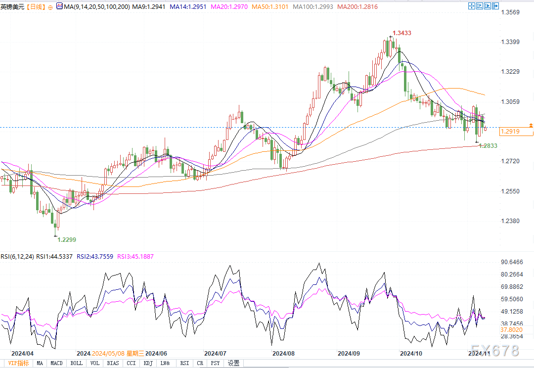 北京时间11月11日9:47,英镑兑美元报1.2918/20