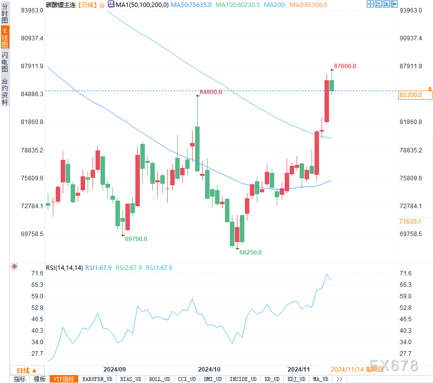 碳酸锂近期价格稳中有升。随着新能源车需求增加,碳酸锂供应紧张的情况短期内难以缓解。业内人士表示,尽管产量增加,但需求增长迅速,预计价格仍将维持高位。短期内碳酸锂的价格走势将继续受到需求端支撑,回调空间有限。
