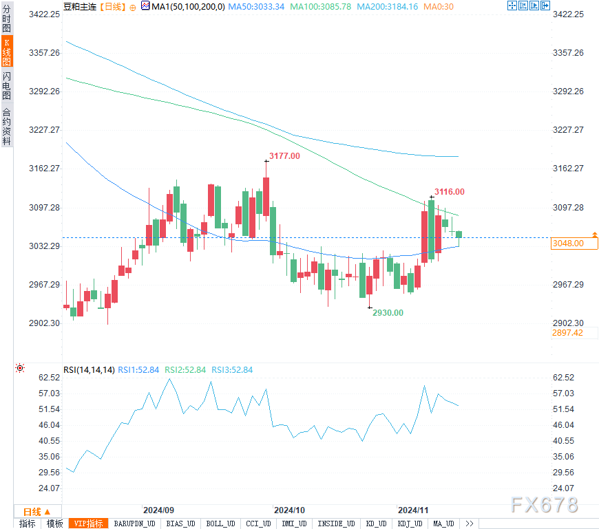 豆粕市场近期表现强势。11月以来,美国大豆供应紧张且压榨企业限量成交的现状推动豆粕价格走高。美国农业部11月报告从成本端利好豆粕价格,同时国内市场进入冬季,饲料需求稳定,预计四季度豆粕将维持偏强走势。短期内豆粕价格抗跌,将受供应端紧张和冬季需求旺季的双重支撑,建议关注价格波动中的低位支撑。
