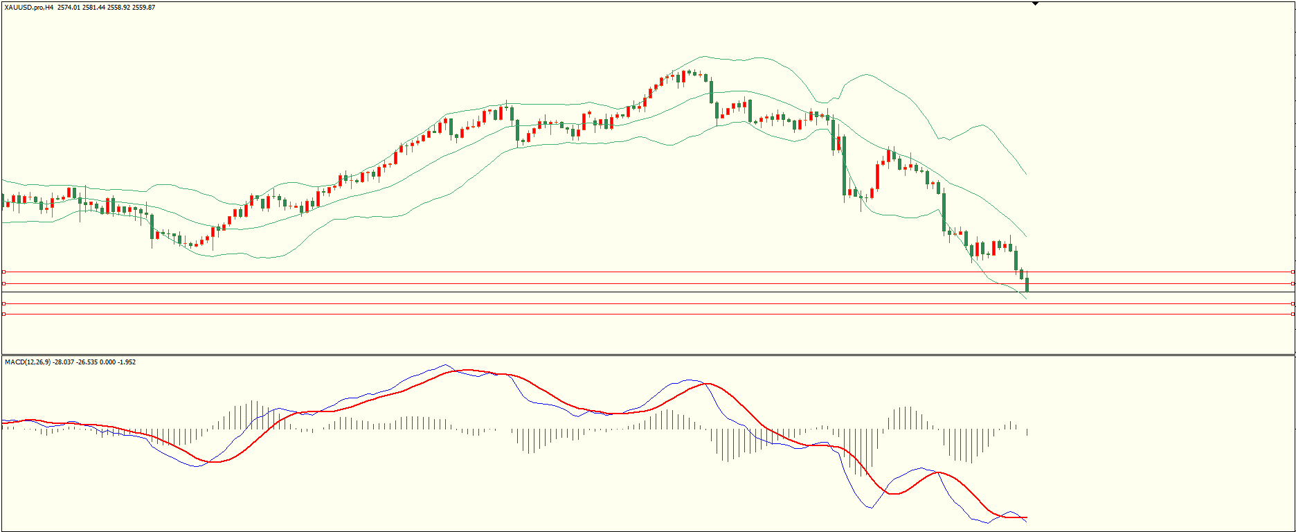 黄金昨日反弹至第一阻力冲高回落,盘中在利空因素打压下扩大跌幅,日线报收上影线中阴线,从收盘来看,短线空头动能增强,同时需留意前低支撑区,失守后方可继续,结合4H来看,布林中轨偏下,MACD零轴下方运行,日内上方首要阻力2568-70,第二阻力2579-80,下方支撑2546-47,2536-38,第一阻力在没有收复前短线有望测试第一支撑。