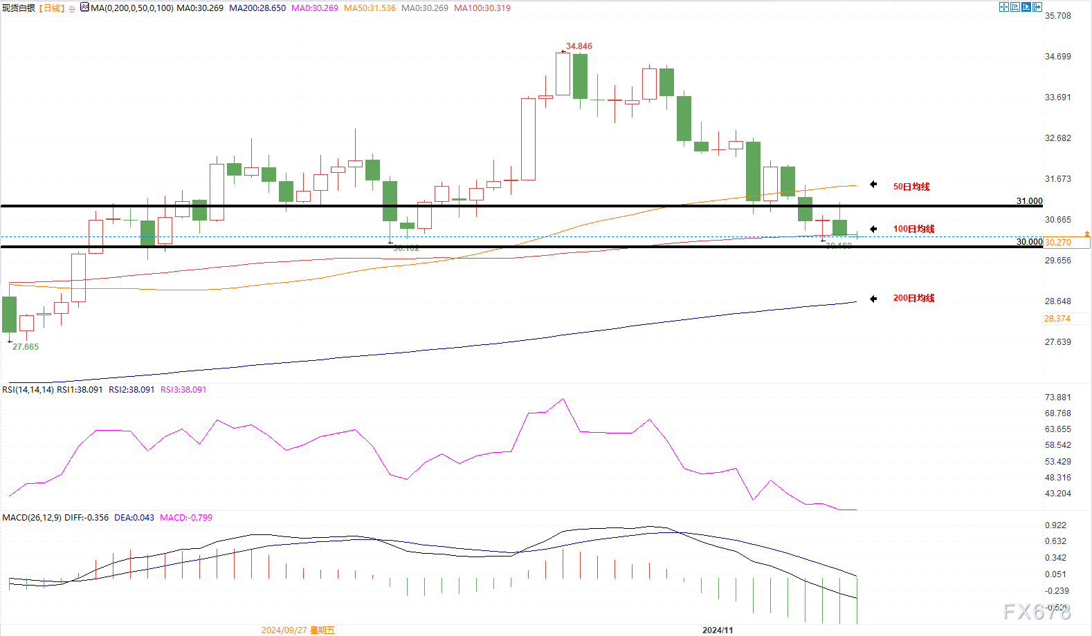 FXTM注册官网行情资讯白银逼近30美元支撑,若跌破将测试200日均线