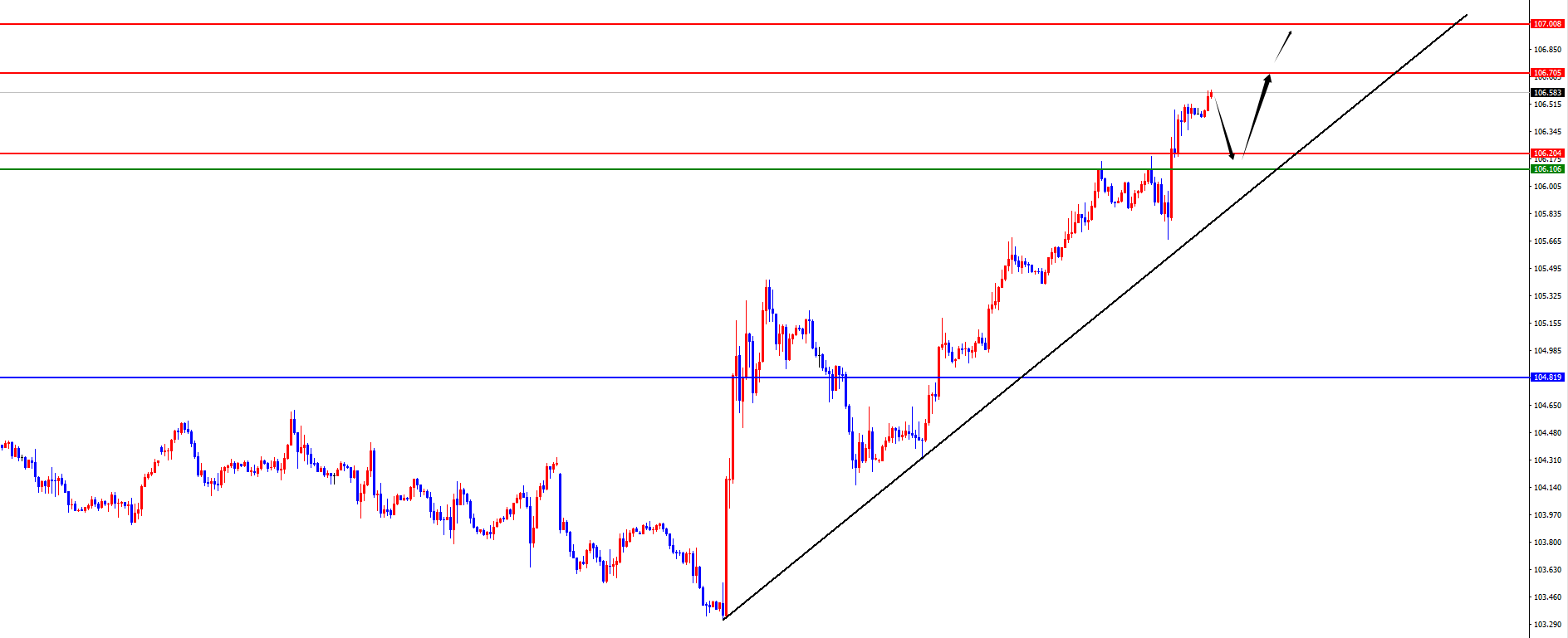 美指106.10-20区间多,防守5美金,目标106.70-107