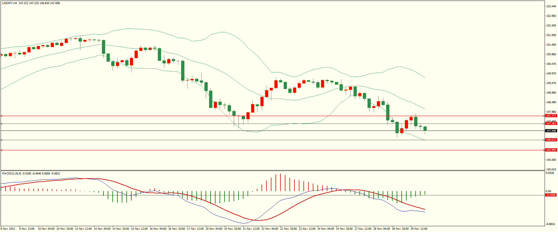 美日昨日反弹至第二阻力下方继续走低,日线报收上下影线小阴线,目前下方临近前低支撑区,下破后方可打开下行空间,从4H来看,布林中轨偏下,MACD零轴下方运行,日内上方首要阻力147.35,第二阻力147.75,下方支撑146.50,146.00,保持在第一阻力下方短线有望测试第一支撑。