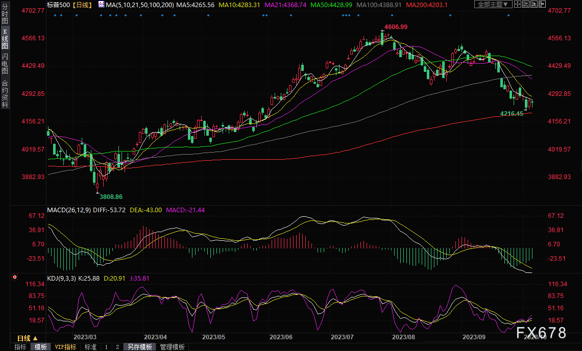 道琼斯工业平均指数下跌9.98点,跌幅0.04%,收于33,119.57点。标准普尔500指数下跌0.13%,收于4,258.19点;纳斯达克综合指数下跌0.12%,收于13,219.83点。股市收盘远低于盘中最低水平,策略师指出,标准普尔500指数目前维持在200日移动均线上方。
