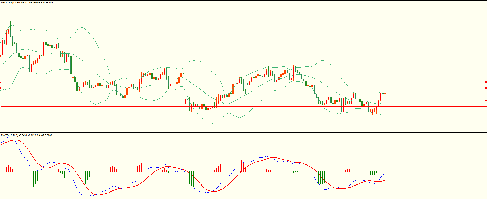原油昨日小幅回调后展开反弹,盘中在利好因素提振下扩大涨幅,日线报收上下影线大阳线,目前上方紧邻日线布林中轨,在没有收复前谨慎追涨,从4H来看,布林中轨略有拐头,MACD零轴附近运行,日内下方首要支撑68.25,第二支撑67.50,上方阻力69.70,70.50,保持在第一支撑上方短线有望测试第一阻力。