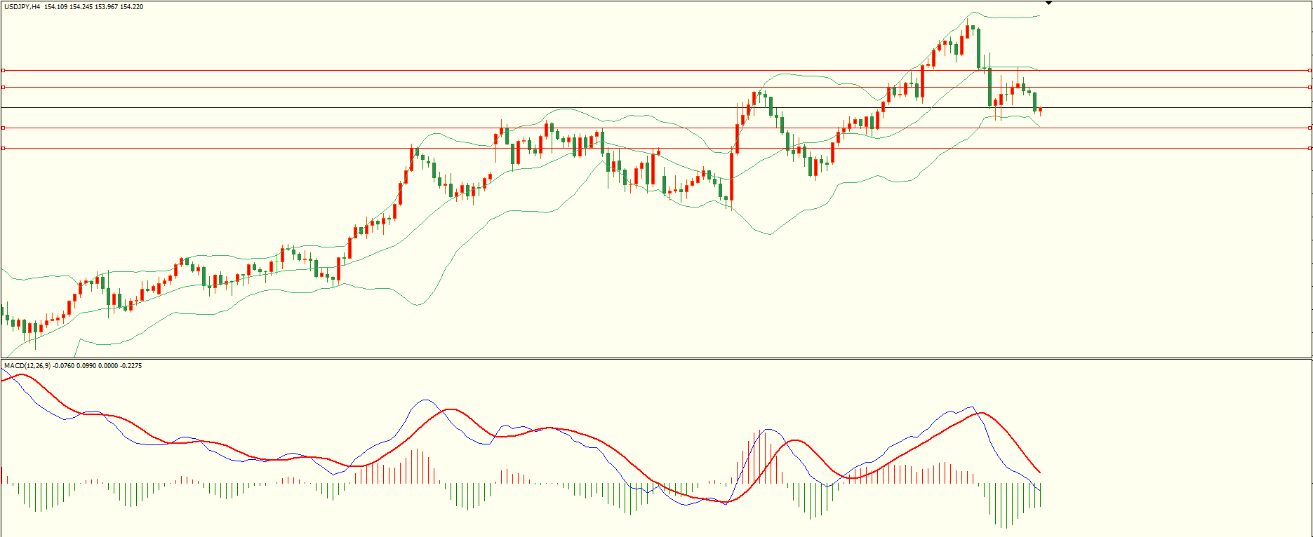 美日昨日反弹至第一阻力承压下行,日线报收上下影线小阳线,总体来看,日线依然处于高位调整状态,短线谨慎追涨杀跌,从4H来看,布林中轨拐头向下,MACD零轴附近运行,日内上方首要阻力154.75,第二阻力155.25,下方支撑153.65,153.05,保持在第一阻力下方短线有望测试第一支撑。