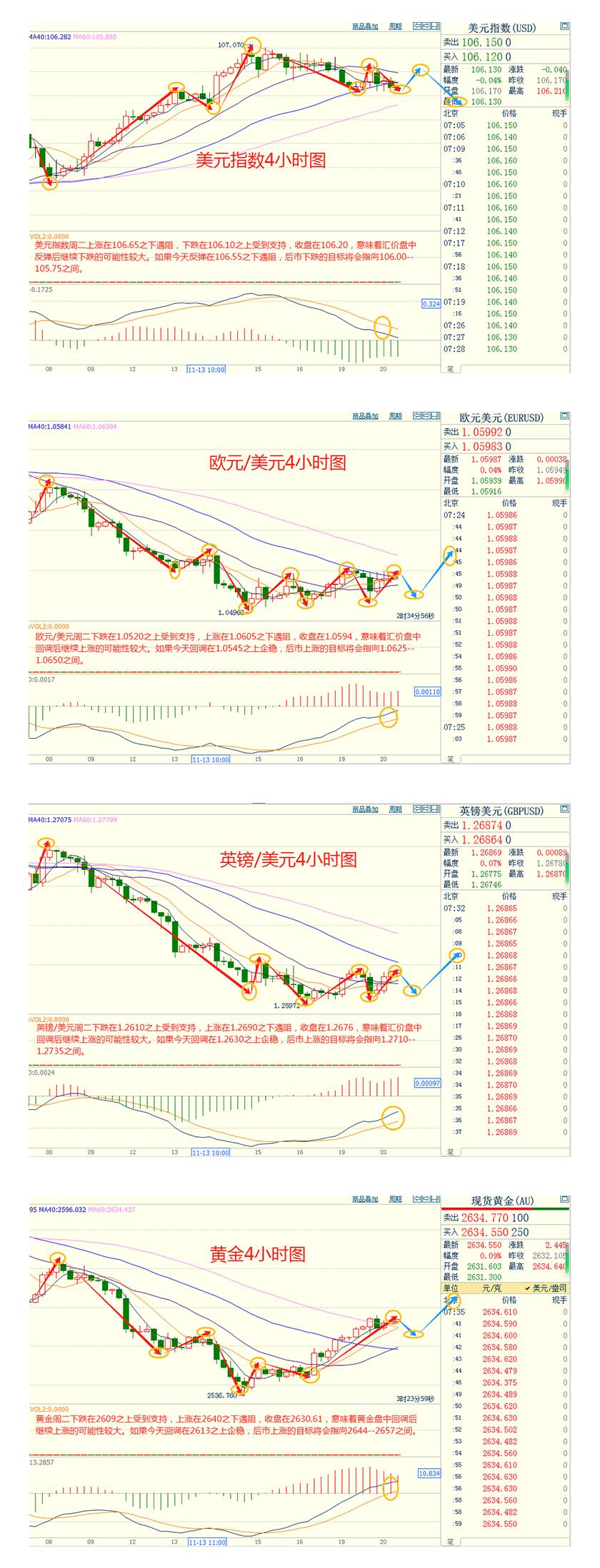 美指周二上涨在106.65之下遇阻,下跌在106.10之上受到支持,意味着美元短线上涨后有可能保持下跌的走势。如果美指今天上涨在106.55之下遇阻,后市下跌的目标将会指向106.00--105.75之间。今天美指短线阻力在106.50--106.55,短线重要阻力在106.80--106.85。今天美指短线支持在106.00--106.05,短线重要支持在105.75--105.80。