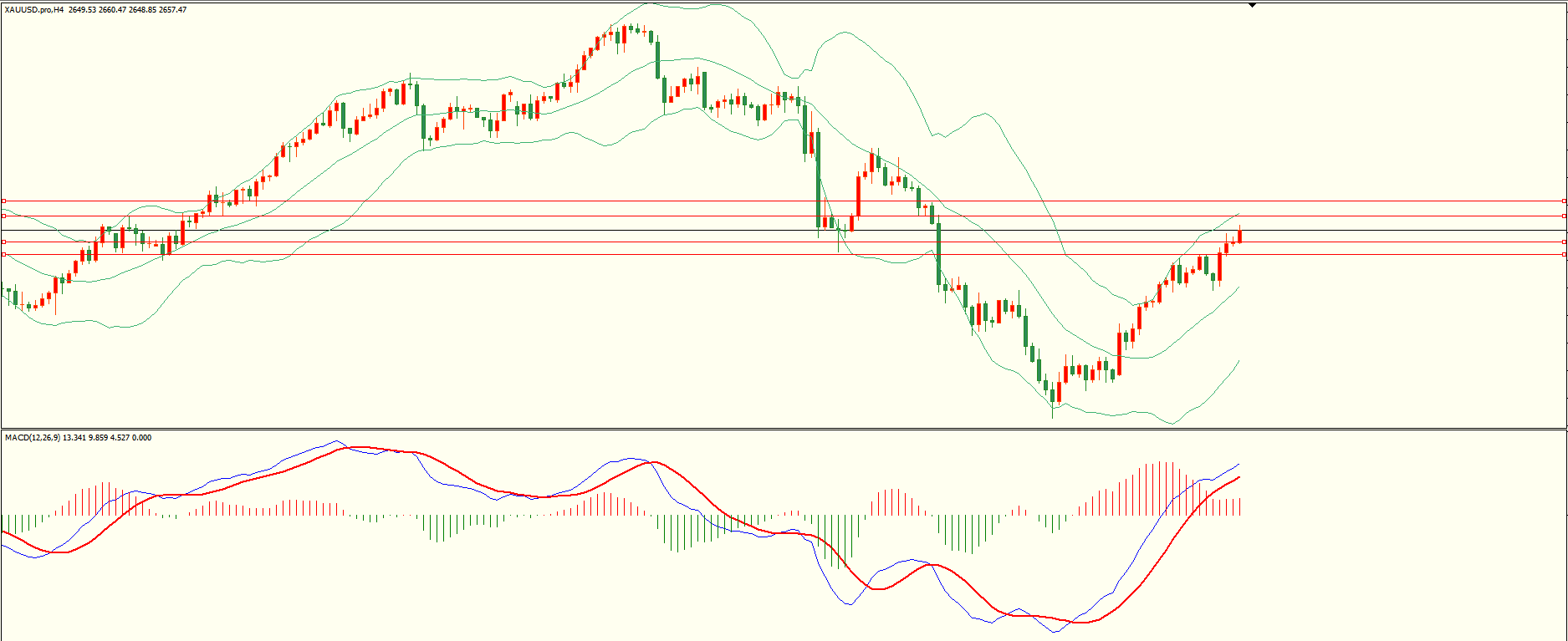 黄金昨日回调至第二支撑附近延续走高,纽约盘时段扩大涨幅,日线报收上下影线中阳线,从收盘来看,目前上方临近前阻力区,突破后方可继续,结合4H来看,布林中轨偏上,MACD零轴上方运行,日内下方首要支撑2650-52,第二支撑2641-42,上方阻力2666-67,2676,第一支撑在没有失守前短线有望测试第一阻力。