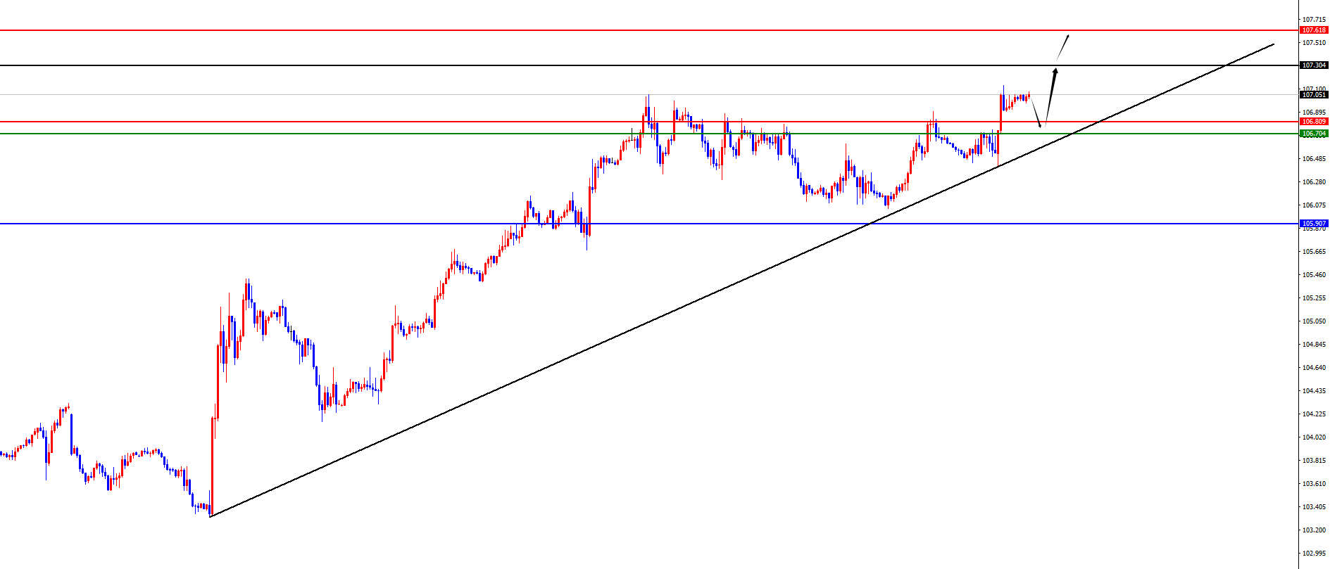 美指106.70-80区间多,防守5美金,目标107.30-107.60