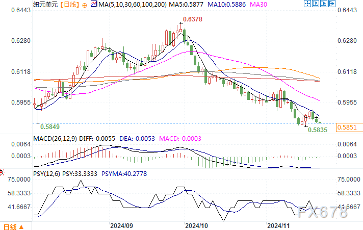 北京时间11月22日9:53 纽元兑美元 报 0.5850/51。