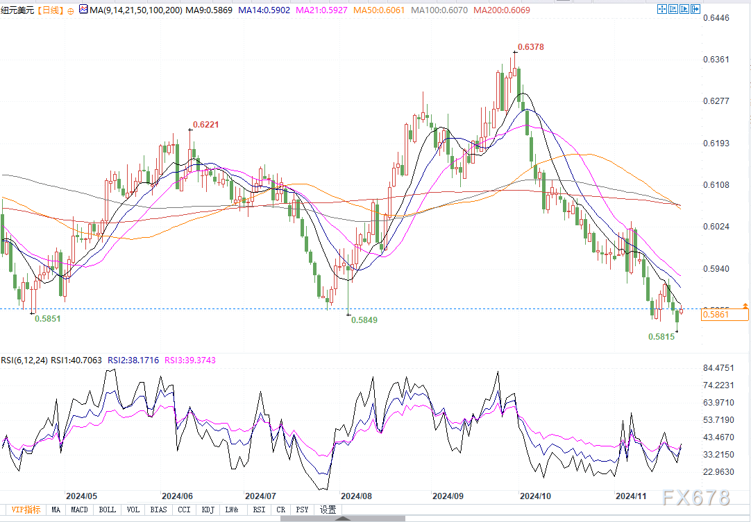 北京时间11月25日10:52,纽元兑美元报0.5861/63
