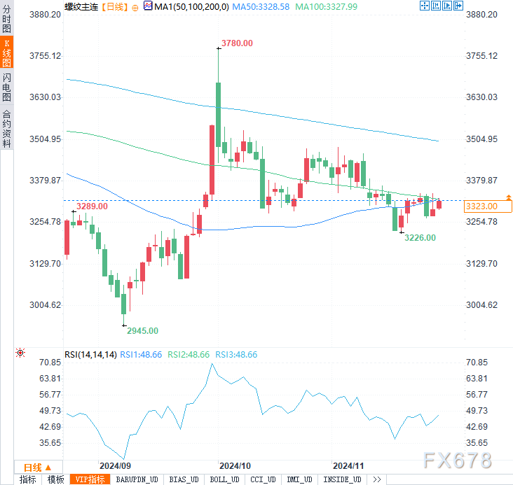 螺纹钢价格预计将在3300元附近震荡,短期受年底产量中性及去库存的支撑,但需求预期偏弱可能压制上涨空间。热卷价格短期关注3450元支撑。