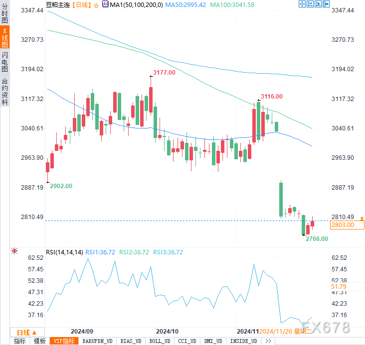全球大豆供应宽松格局延续,巴西新作种植进展顺利,南美地区降水改善种植条件,美国农业部出口检验报告显示美国大豆出口量低于去年同期,市场对未来出口前景存疑。此外,国内四季度油厂开机率下降至56.96%,现货市场豆粕报价维持稳定,沿海地区主流报价涨跌互现。