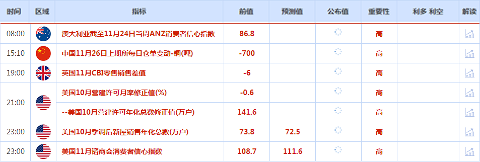 周四是美国感恩节假期,周五许多市场专业人士也放假,因此市场交投清淡。本周唯一的重要数据是周三公布的美国第三季度国内生产总值(GDP)二读数据和 10 月份个人消费支出物价指数。