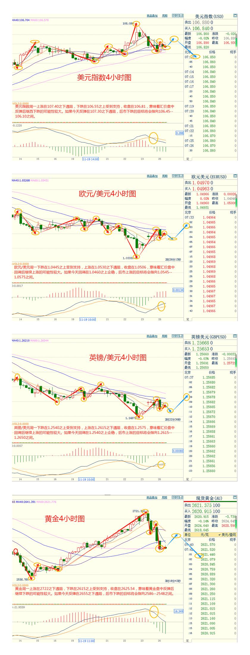 美指周一上涨在107.40之下遇阻,下跌在106.55之上受到支持,意味着美元短线上涨后有可能保持下跌的走势。如果美指今天上涨在107.30之下遇阻,后市下跌的目标将会指向106.45--106.10之间。今天美指短线阻力在107.25--107.30,短线重要阻力在107.70--107.75。今天美指短线支持在106.45--106.50,短线重要支持在106.10--106.15。