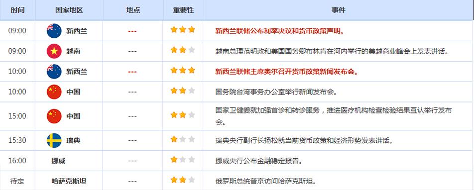 前日公布数据与消息: