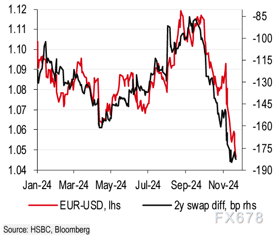 汇丰分析师预测,欧元兑美元12月可能反弹,但2025年走势艰难,可能跌破平价。