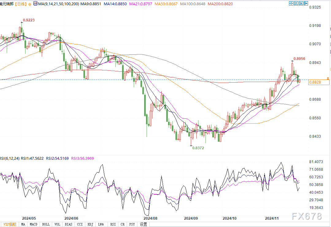 北京时间11月28日9:44,美元兑瑞郎报0.8828/30