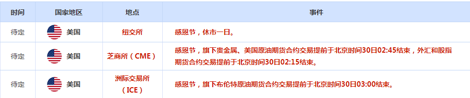 进入周四美国感恩节假期后,交易量下降,许多交易员上周五仍休假。
