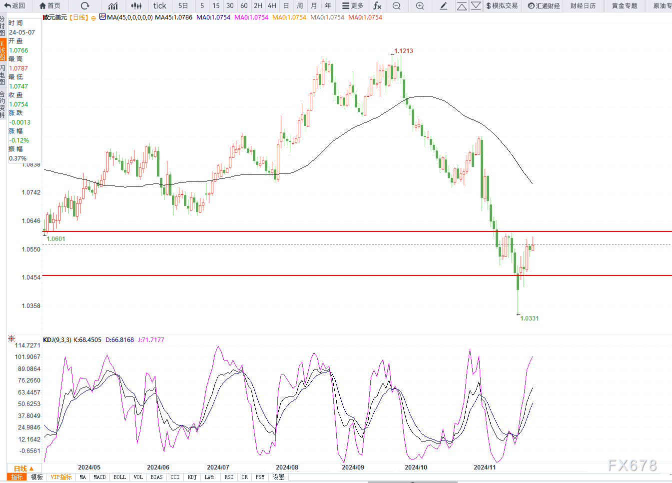 上方压力1.0620无法突破则箱体结构不变,下方支撑1.0460。