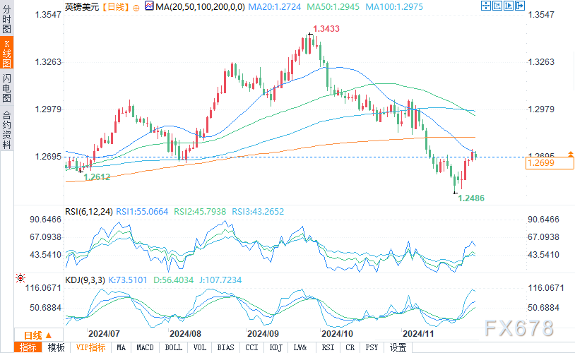 支撑位见于11月中旬的低点1.2597。