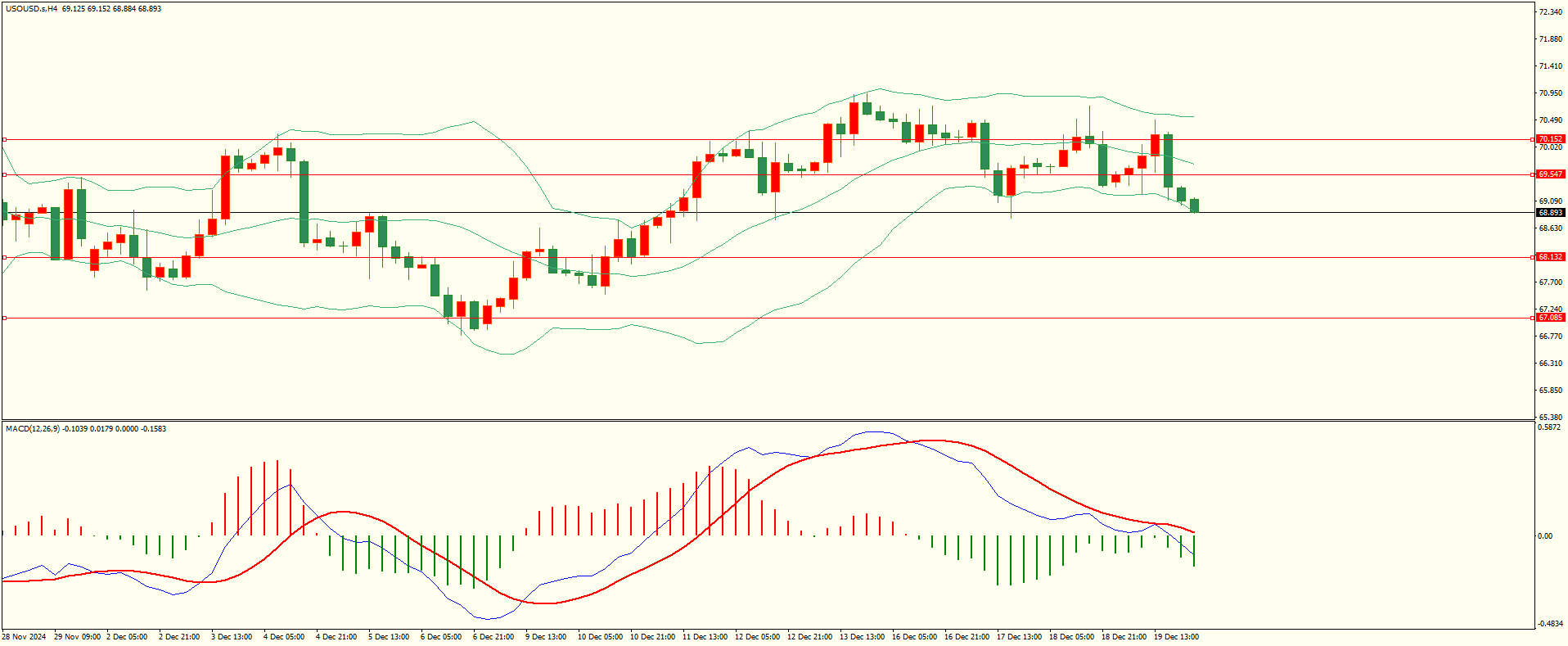 原油昨日触及第一阻力上方冲高回落,日线报收上影线小阴线,总体来看,日线的多空震荡尚未结束,短线谨慎追涨杀跌,从4H来看,布林中轨偏下,MACD零轴附近运行,日内上方首要阻力69.50-60,第二阻力70.15,下方支撑68.10,67.05,保持在第一阻力下方短线有望测试第一支撑。