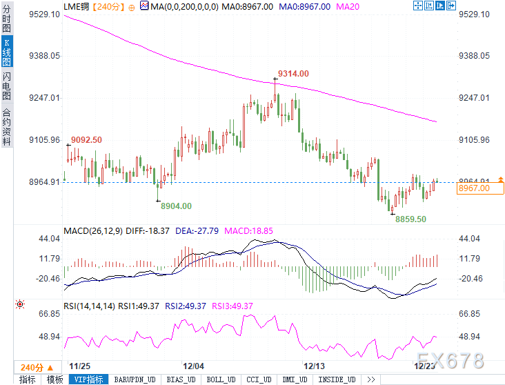 周二(12月24日)铜期货市场表现分化。尽管大多数基本金属在狭窄区间内走高,但美元走强的压力依然限制了涨幅。美国利率长期上升的预期推动美元指数上涨,进一步对金属价格造成了压力。