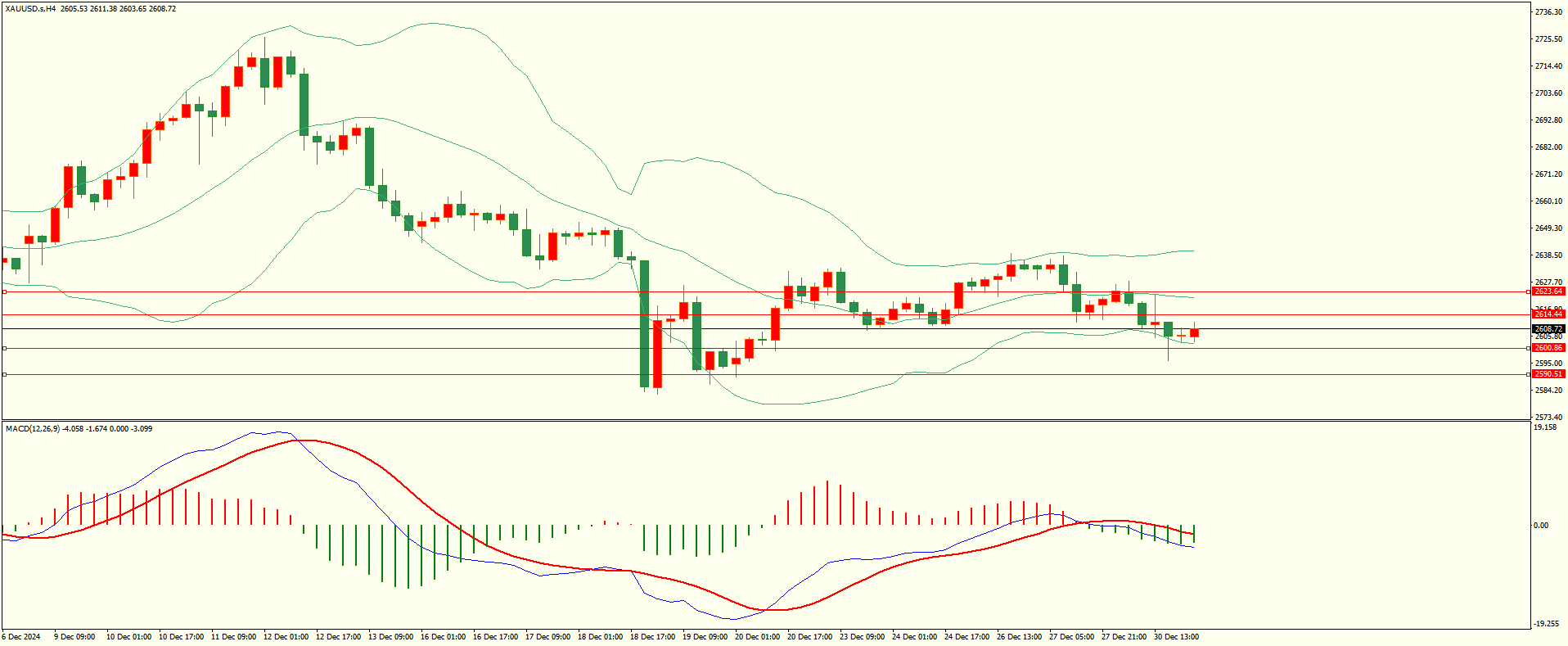 黄金昨日反弹至第一阻力延续下行,纽约盘时段扩大跌幅,日线报收上下影线中阴线,从收盘来看,短线空头略有占优,同时需留意前低支撑区,下破后方可打开下行空间,结合4H来看,布林中轨略有走平,MACD零轴附近运行,日内上方首要阻力2614-15,第二阻力2622-23,下方支撑2600,2590,第一阻力在没有收复前短线有望回测第一支撑。