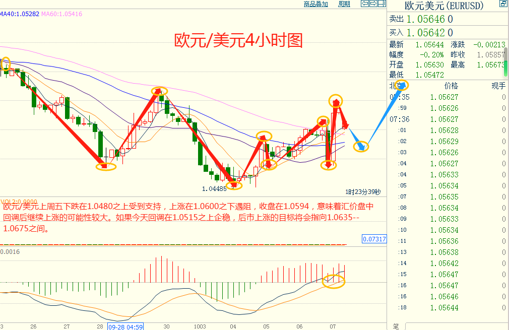 欧美上周五下跌在1.0480之上受到支持,上涨在1.0600之下遇阻,意味着欧美短线下跌后有可能保持上涨的走势。如果欧美今天下跌在1.0515之上受到支持,后市上涨的目标将会指向1.0635--1.0675之间。今天欧美短线阻力在1.0630--1.0635,短线重要阻力在1.0670--1.0675。今天欧美短线支持在1.0515--1.0520,短线重要支持在1.0440--1.0445。