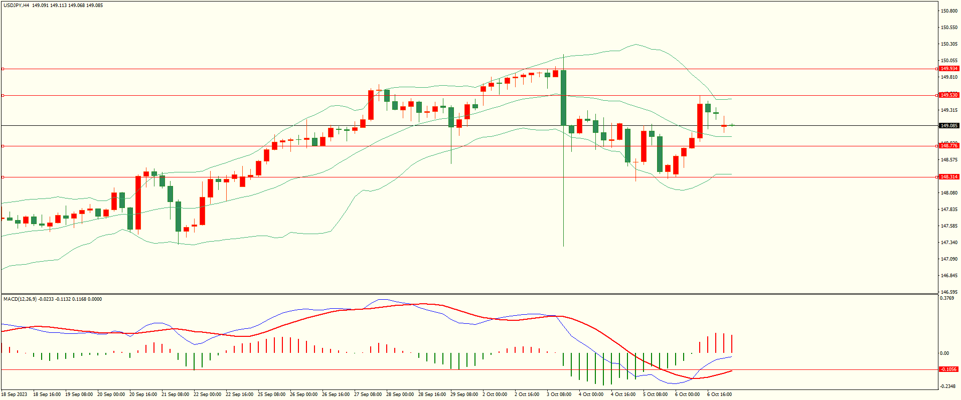 美日上周五亚市开盘后展开反弹,纽约盘时段触及第一阻力略有缓和,日线报收上影线中阳线,下方支撑保持,同时上方阻力并未收复,短线的多空争夺有望继续,从4H来看,布林上下轨收窄,MACD零轴附近运行,日内上方首要阻力149.50-60,第二阻力149.95,下方支撑148.70-80,148.30-40,保持在第一阻力下方短线有望回测第一支撑。