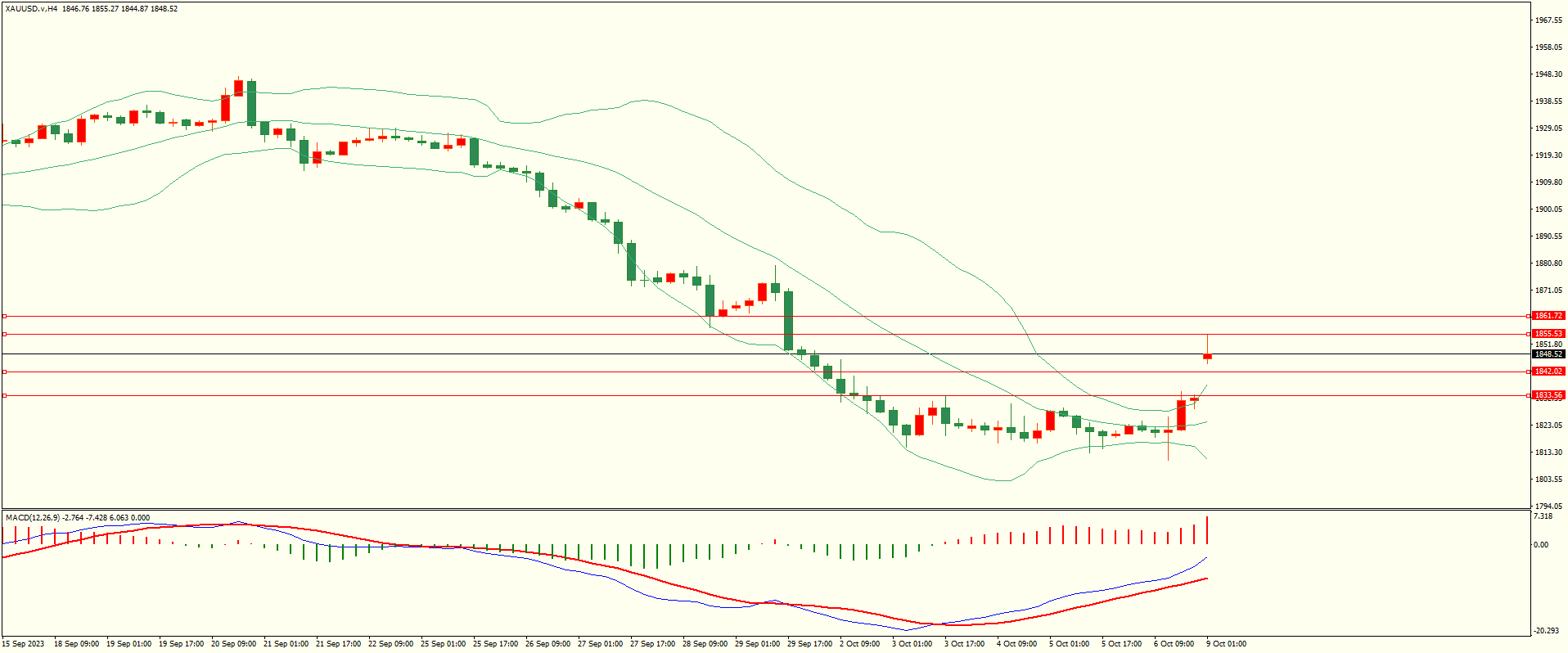 黄金上周五先抑后扬,美国非农数据发布后回落至第二支撑附近展开反弹,至收盘触及第一阻力陷入窄幅整理,日线报收上下影线中阳线,从收盘来看,下方支撑保持,同时上方面临多重阻力,短线走震荡概率较高,结合4H来看,布林中轨略有走平,MACD零轴下方运行,日内下方首要支撑1841-42,第二支撑1833-34,上方阻力1855-56,1861-62,第一支撑在没有下破前短线有望测试第一阻力。