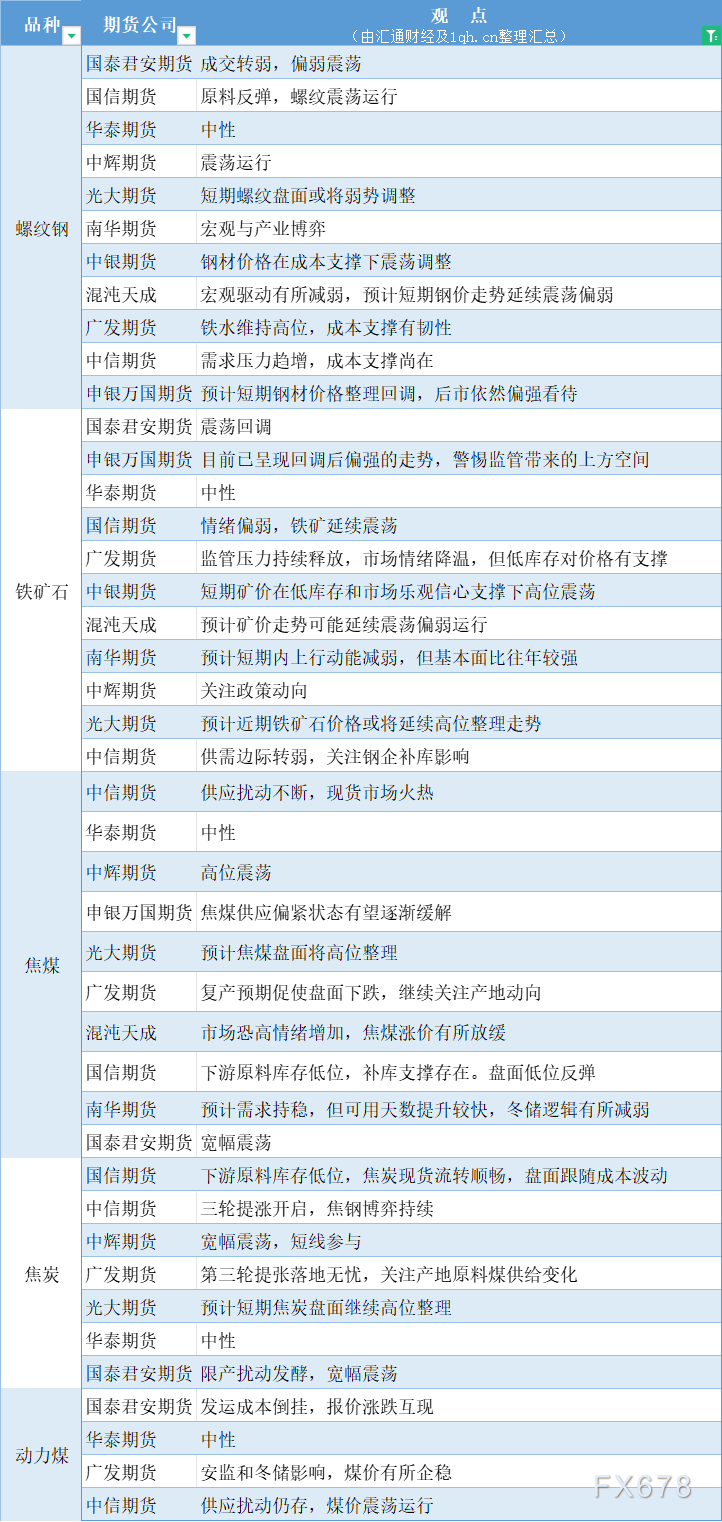 期货公司观点汇总一张图:12月6日黑色系(螺纹钢、焦煤、焦炭、铁矿石、动力煤等)