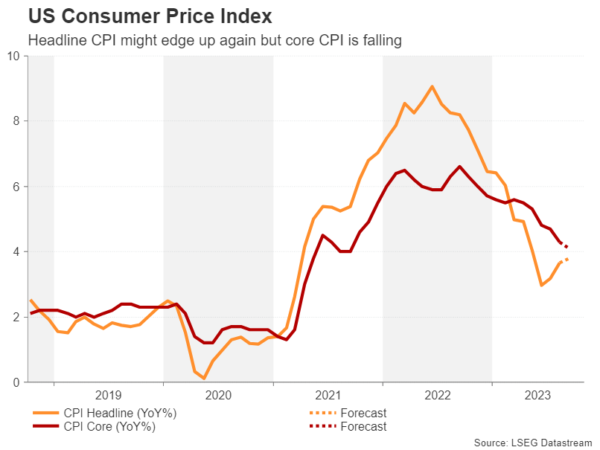 美国整体CPI可能再次上升 随着有关美联储是否会再次加息的猜测愈演愈烈,美国消费者价格指数(CPI)的最新报告将成为本周的一大亮点。距离下一次联邦公开市场委员会(FOMC)的决定还有不到四周的时间,在有关经济走向的相互矛盾的数据中,政策制定者和交易员都有一种盲目驾驶的感觉。 9月CPI报告可能会在本周四驱散一些迷雾,也可能只会增加混乱。在前两次发布的数据中,总体CPI小幅上升,8月份同比上升至3.7%。最近汽油价格的上涨是CPI上涨的主要原因,8月份CPI环比上涨加速至0.6%。