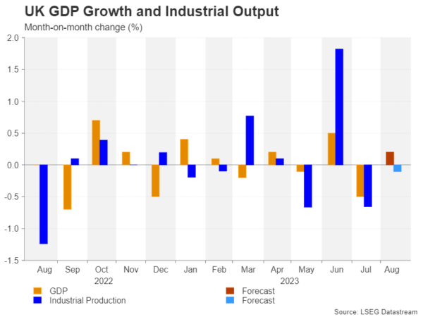上周二,10年期国债收益率一度触及4.88%的16年高点,推动美元升值。投资者可能会在会议纪要中权衡对经济放缓的担忧和对通胀再次抬头的担忧。如果美联储官员担心的不是经济放缓,而是粘性通胀,那么收益率可能会攀升至新高。然而,任何对收益率和美元的提振都是不可持续的,除非随后有一份炙手可热的CPI报告。 最后,将于本周五公布的密歇根大学消费者信心指数初值也将备受关注,尤其是通胀预期数据。 英国经济:没那么糟糕,但不够强劲 英镑最近受到美元复苏、英国央行出人意料地倾向鸽派以及英国经济前景黯淡等因素的多重打击。在此过程中,英镑失去了今年外汇市场表现最佳货币的桂冠。 然而,经济并非一片黯淡。英国国家统计局最近公布了对国内生产总值(GDP)的修正值,目前估计英国经济比疫情前增长1.8%,而此前的估计是萎缩0.2%,这使英国的处境并不比欧洲主要国家差。此外,9月服务业PMI终值大幅上修,缓解了对经济衰退迫在眉睫的担忧。